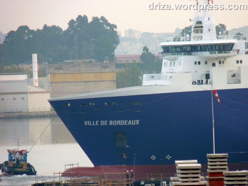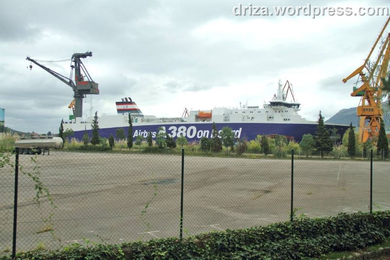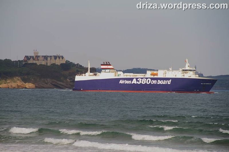 (Texto: Carlos) El pasado lunes a las siete menos diez de la mañana entró a reparar al astillero de Astander, procedente del puerto francés de Saint Nazaire, el buque de carga, Ville de Bordeaux. Con sus 154 m. de eslora y construido en el astillero chino de Jinling, fue botado en enero del 2004 y comenzó a operar para la compañía aeronáutica Airbus, el 10 de junio del mismo año. Es el primero junto con otros dos barcos, Ciudad de Hamburgo y Ciudad de Cádiz, arrendados por 20 años con opción a otros 10 más, que se encargan de transportar las pesadas piezas del Airbus 380 para ser ensambladas en la línea de montaje final sita en Tolouse.